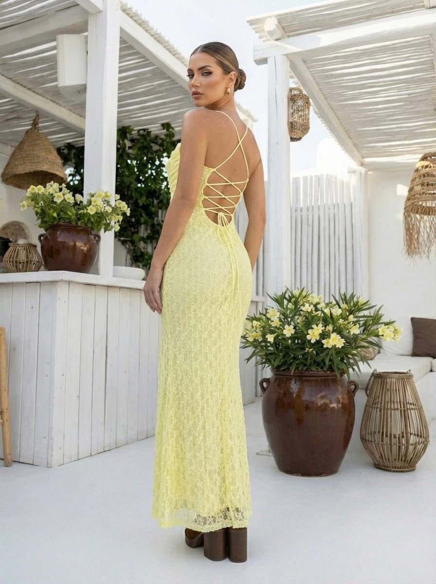 Vestido maxi sirena de blonda espalda lace up